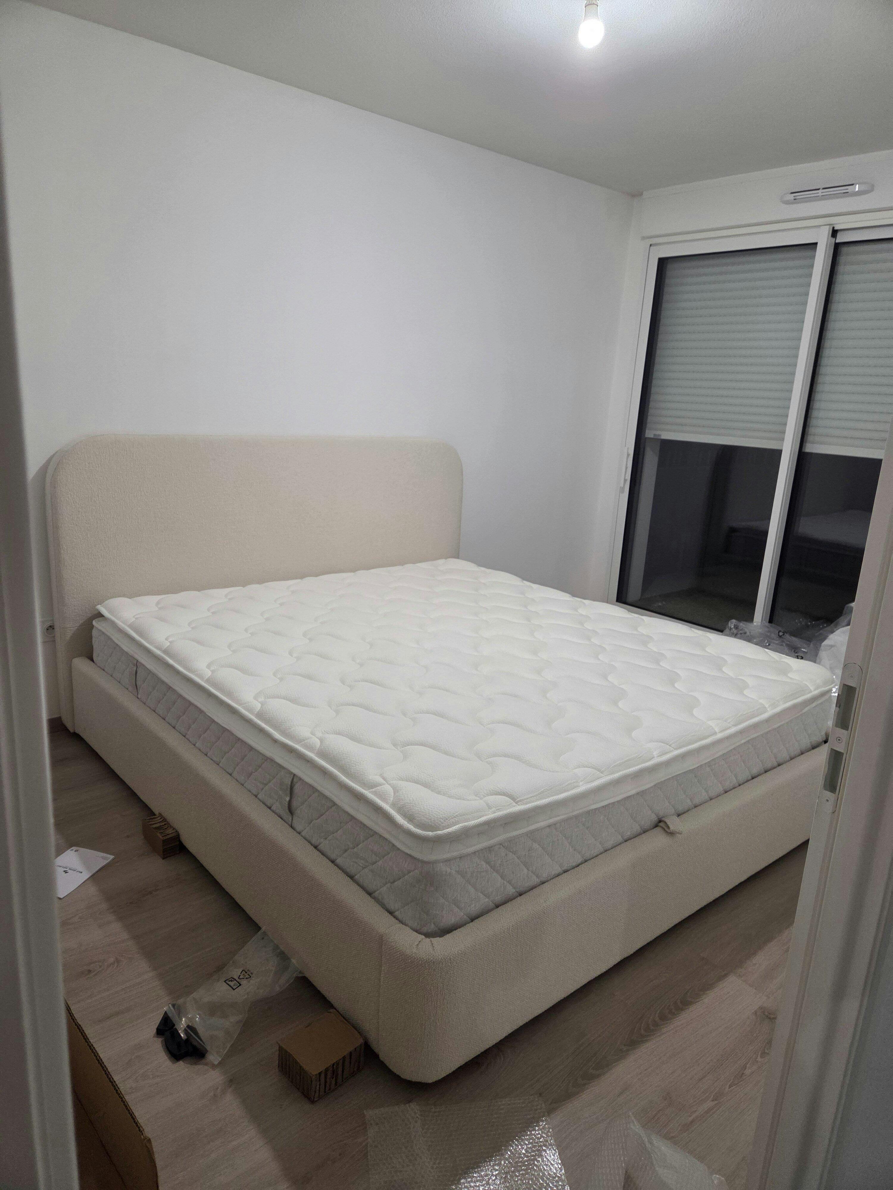 Très beau lit plutôt facile à monter mais il manquait 2 visses et les finitions du cadre du sommier pourraient être mieux réalisées afin de bien aligner sur le système d'ouverture de coffre. Nous sommes cependant très satisfait car le lit est très beau.