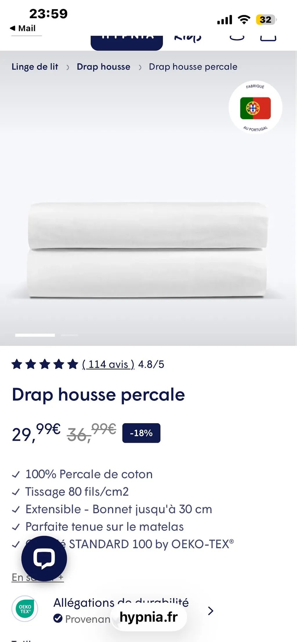 Drap housse percale